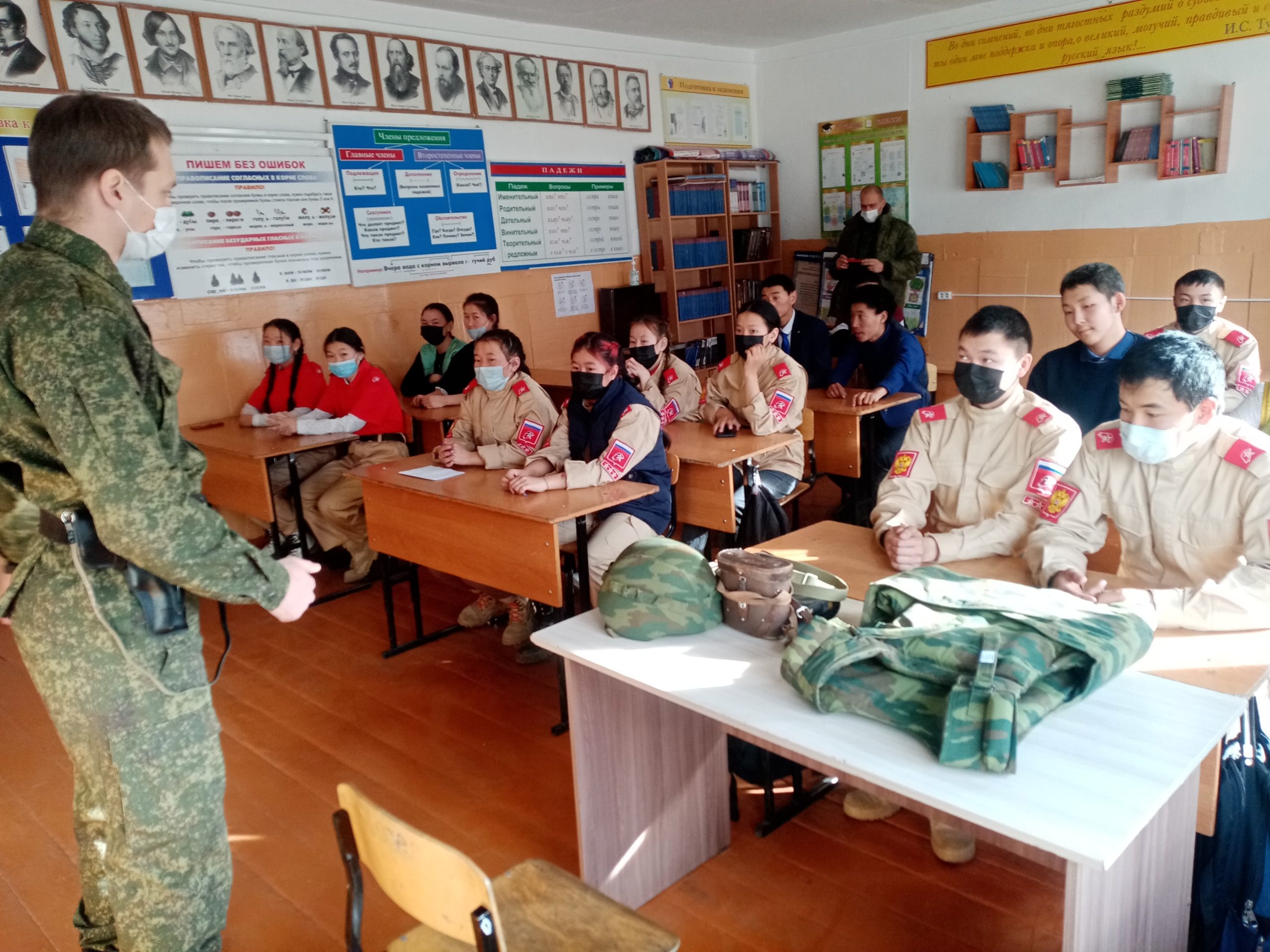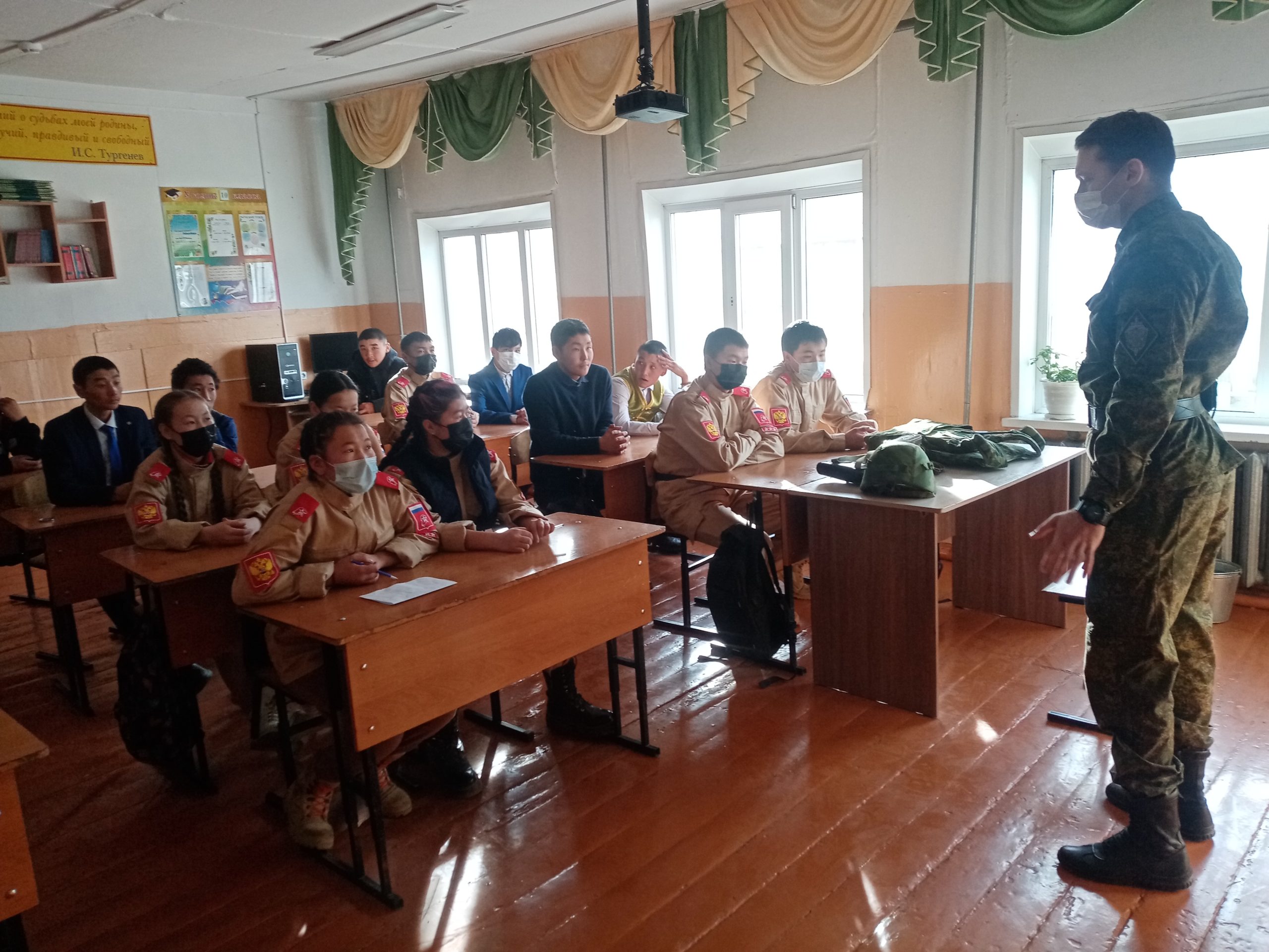 24 ноября 2021 года в МБОУ Моген-Буренская СОШ с. Кызыл-Хая проведено военно-патриотическое мероприятие «Урок мужества» для старших классов и отряда Юнармии школы. Мероприятие проходило при строгом соблюдении санитарно-эпидемиологических норм и стандартов. Были приглашены офицеры пограничной заставы. Вниманию учащихся школы продемонстрированы основы владения пистолетом, правила ношения военного бронежилета и шлема, правила поступления в пограничные училища. Юнармейцы с интересом задавали вопросы как стать офицером или прапорщиком пограничной службы.