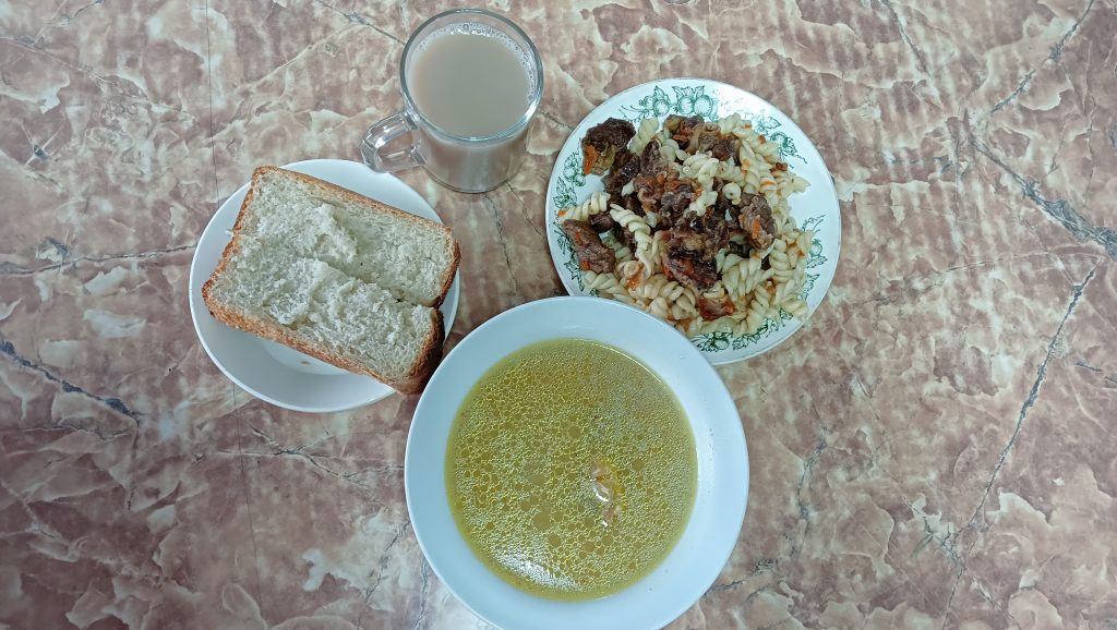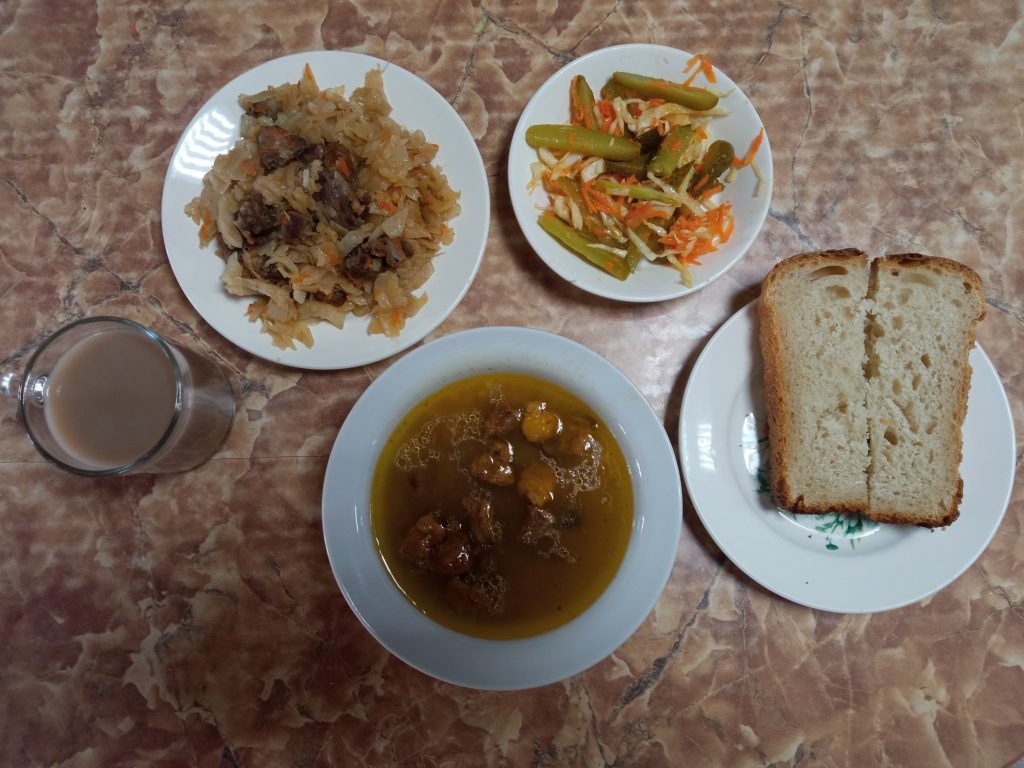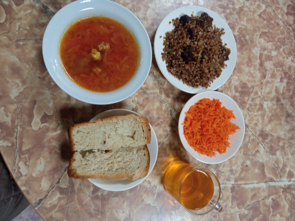 Рассольник ленинградский с добавлением спиралевидных макарон.
